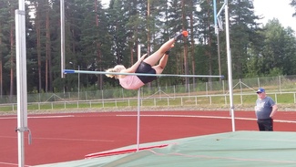 ![]() Oosa Kantanen ylittää riman seuracupin seiväshypyssä. |